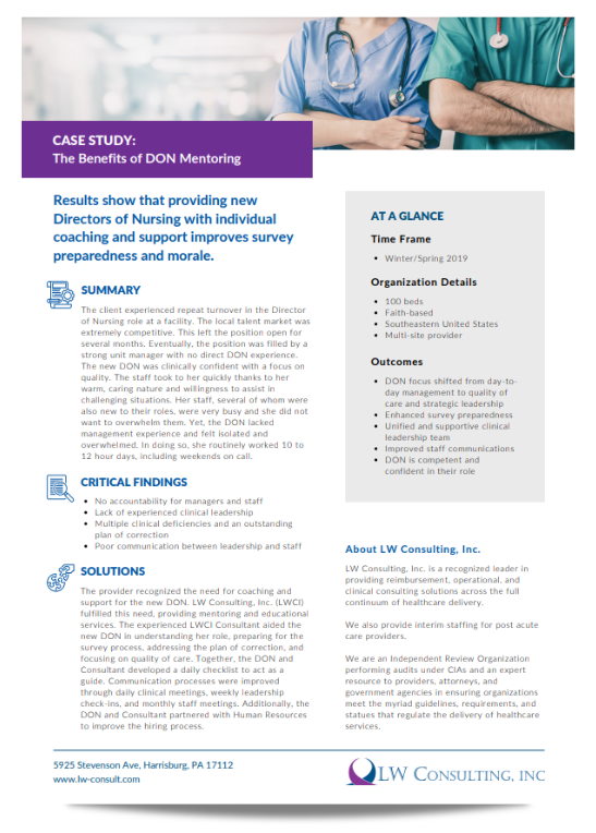 LW Consulting, Inc. works with hundreds of long-term care (LTC) facilities nationwide.