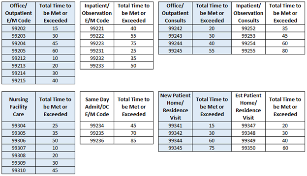 - For example, in 2023, 99202 required 15-29 minutes of total time spent on the date of the encounter; in 2024, 99202 requires 15 minutes of time must be met or exceeded.
